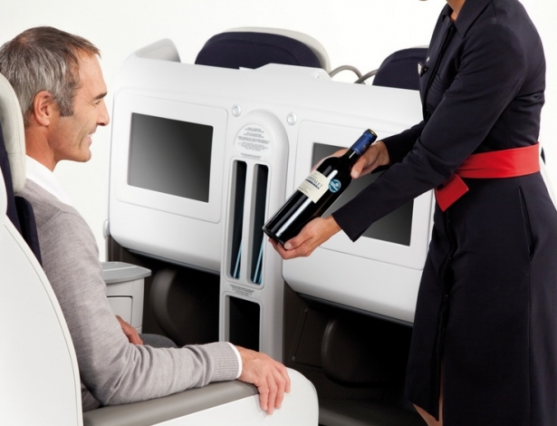 Ketering u biznis klasi se razlikuje od onog u ekonomskoj. Putnici obično imaju piće dobrodošlice (šampanjac najčešće), a hrana im se služi na porcelanskom posuđu, sa pravim escajgom. Izbor obroka je veći, a jela su drugačija, obično luksuznija. Piće se poslužuje u staklenim ili kristalnim čašama, a na raspolaganju je veliki izbor najrazličitijih toplih napitaka, osvežavajućih bezalkoholnih pića, vina, piva ili žestokih pića.Izbor hrane i pića zavisi od dužine trajanja leta i od tipa aviona. Izbor obroka zavisi i od doba dana, a na dužim letovima se služi i više obroka.