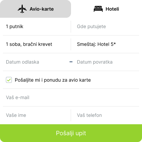 Vaš upit za hotelski smeštaj je poslat, uskoro možete očekivati našu ponudu.